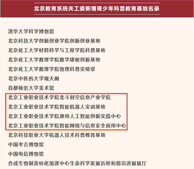 在会上,我校北斗时空信息产业学院、智能机器人实训基地、通用人工智能创新实践中心和智能网络与信息安全应用中心被授予“北京教育系统关工委青少年科普教育基地”。