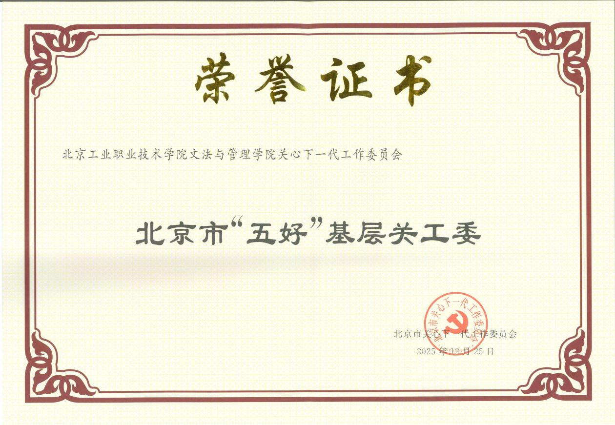 我校机电工程学院关工委、建筑与测绘工程学院关工委、文法与管理学院关工委被认定为北京市“五好”基层关工委。