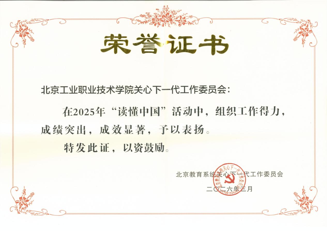 学校关工委荣获北京教育系统关工委2025年“读懂中国”活动优秀组织单位、信息宣传工作先进单位,刘丁燃同志荣获信息宣传工作先进个人。