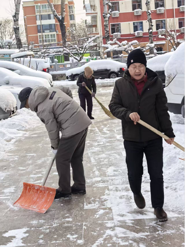 连日来,北京迎来强降雪天气,银装素裹的城市美景背后,积雪和冰冻给居民出行带来了诸多不便。面对这一情况,学校老党员先锋队积极响应,以雪为令,迅速行动,在寒风中展开了一场温暖而有力的扫雪除冰行动。
